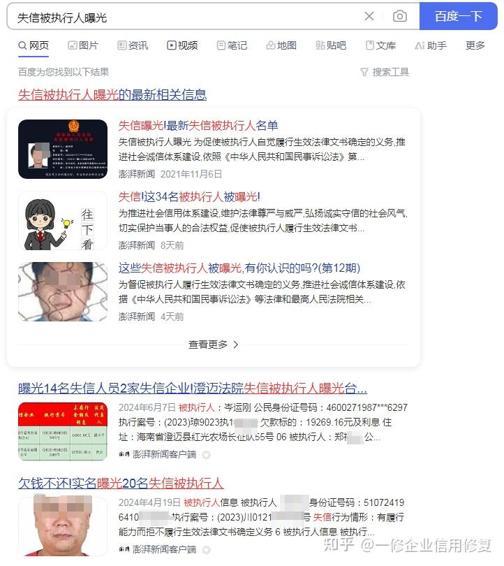 百度失信被执行人曝光搜索页面