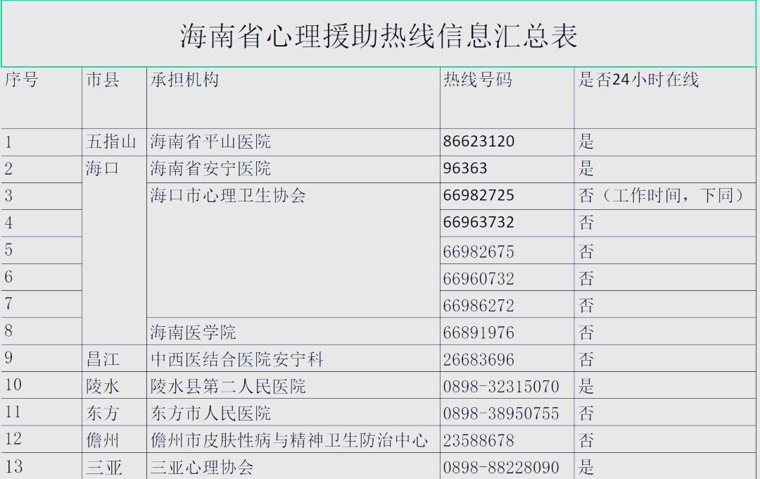 01海南心理援助热线公布