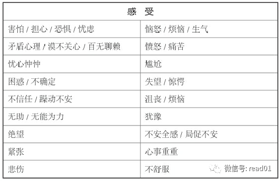 你可以从下列感受列表中选择感觉,并添加你能感受到但并未在列表中显示的内容: