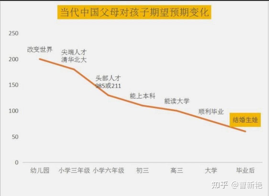 正如网络梗图“当代中国父母对孩子期望预期变化”所示: