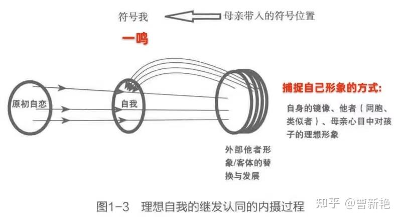 上图所说,母亲带入的符号位置,指的就是以孩子的名字为代表的符号位置,我是“一鸣”,我是XX的儿子,是XX家族的长孙,被寄予了XX期待。孩子通过自己镜子里的镜像、兄弟姐妹等其他孩子的样子、父母眼里的自己的样子等获得关于自己的“像”。以上这些统统经由内摄,汇入一个叫“我”的池子。