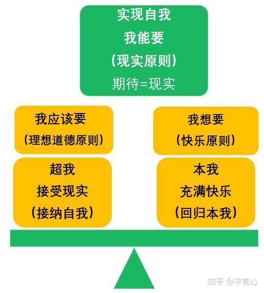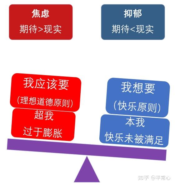 这样一种自我惩罚性反馈机制,则与患者发病之前形成的结果/目标导向习惯相关:过于关注目标或结果是否实现,而忽视了对自我感受的关注,就像马(本我/快乐原则/我想要)拉车拉不动时,拉车人(超我/理想道德原则/我应该要)不是让马停下来休息一下吃点东西补充恢复体力(关爱本我、恢复自我/现实原则/我能要),而是开始生气并不断责怪马的懒惰并拿皮鞭抽打它(超我焦虑),其结果必然是马越来越不愿继续前进(本我动力减弱),停止前进甚至直接躺平(本我抑郁)。
