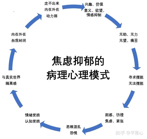 ④ 中国社会对于焦虑抑郁总体上是不太包容理解的,虽然目前这种情形也在慢慢改变,这会加重患者的无助感和病耻感,加重焦虑抑郁;